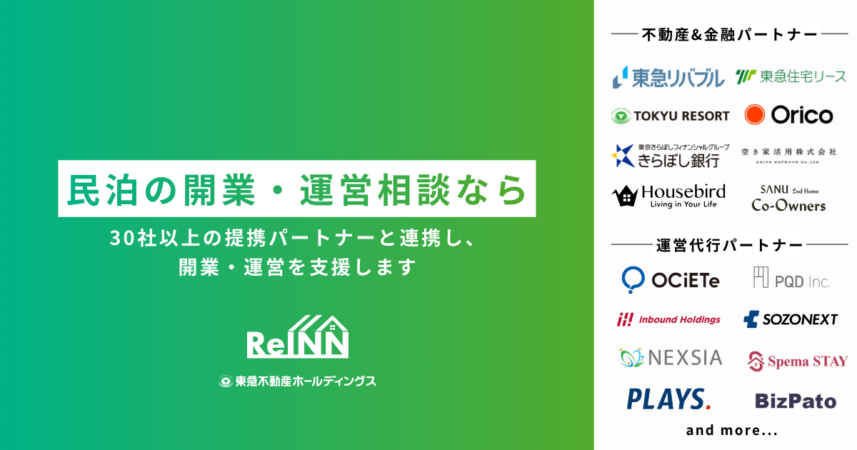 東急不動産ホールディングスグループが持つ不動産領域の深いナレッジと、ReINNが独自に構築した全国の住宅宿泊管理業者とのネットワークを組み合わせることで、民泊の売買から運営代行の選定まで、ワンストップでご対応します。