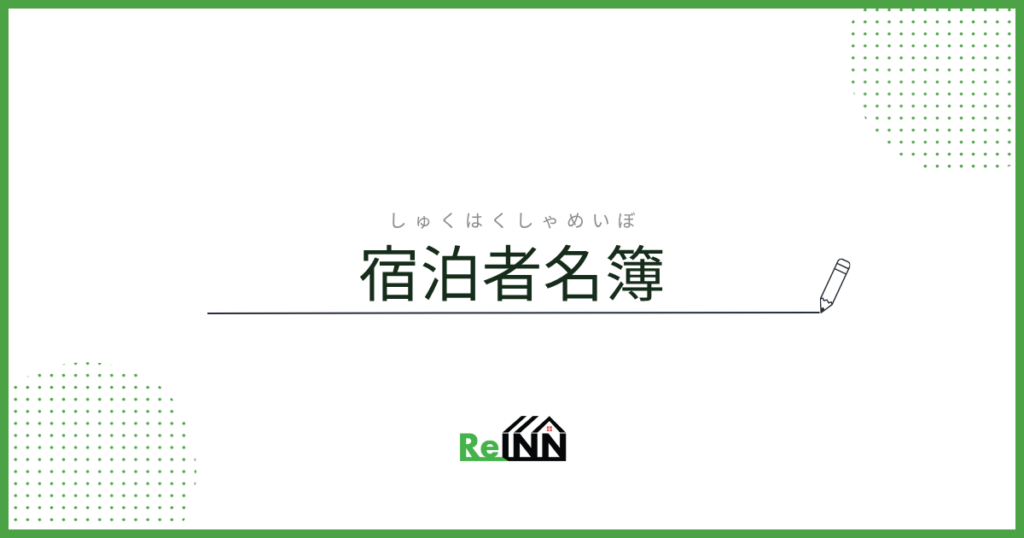宿泊者名簿とは、住宅宿泊事業法や旅館業法に基づき、施設運営者が備え付けることを義務付けられた帳簿です。 宿泊者名簿には、宿泊者の氏名、住所、職業、宿泊日などを記載し、日本国内に住所を有しない外国人宿泊者に対しては、旅券の写しを宿泊者名簿と... -